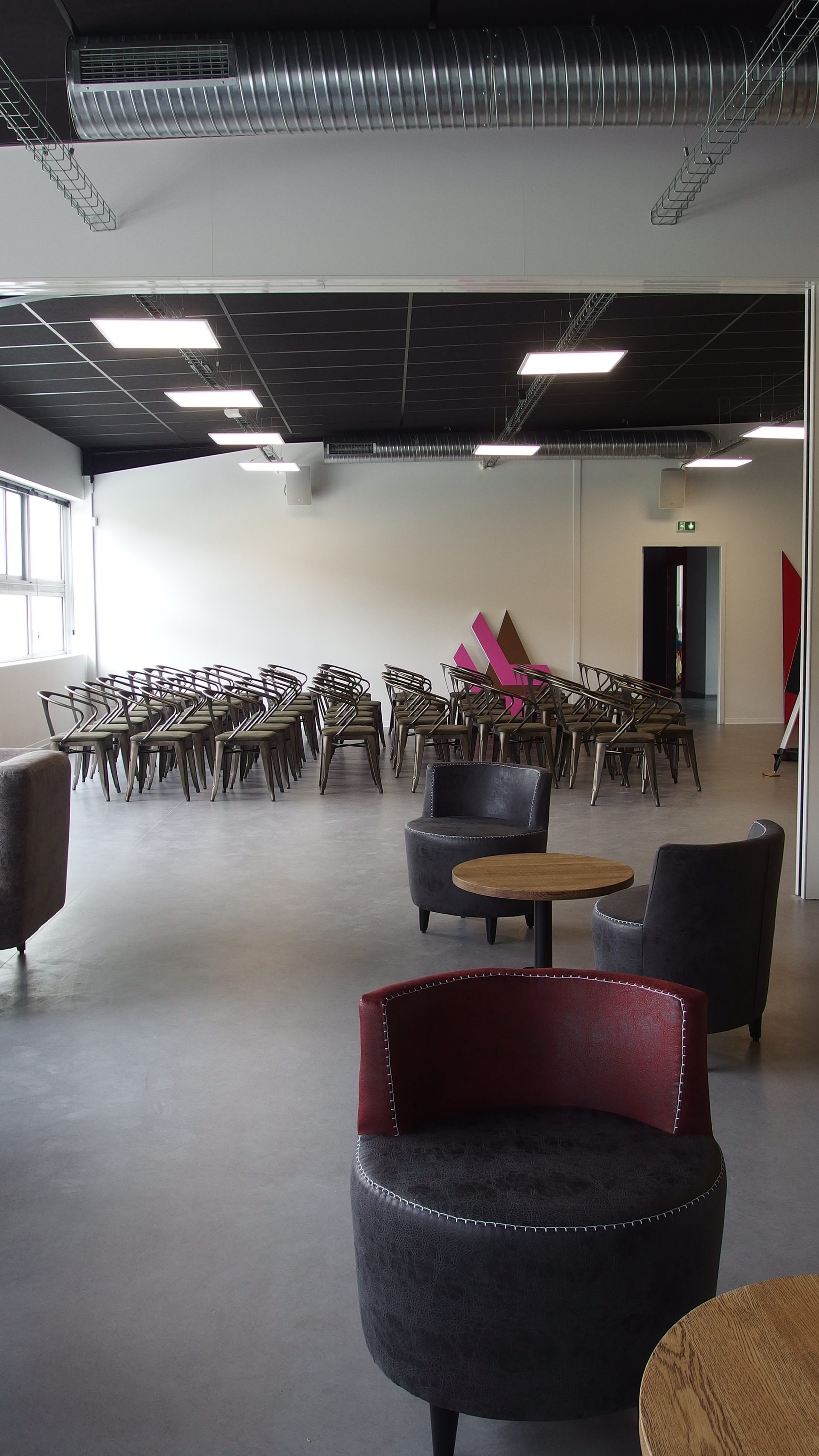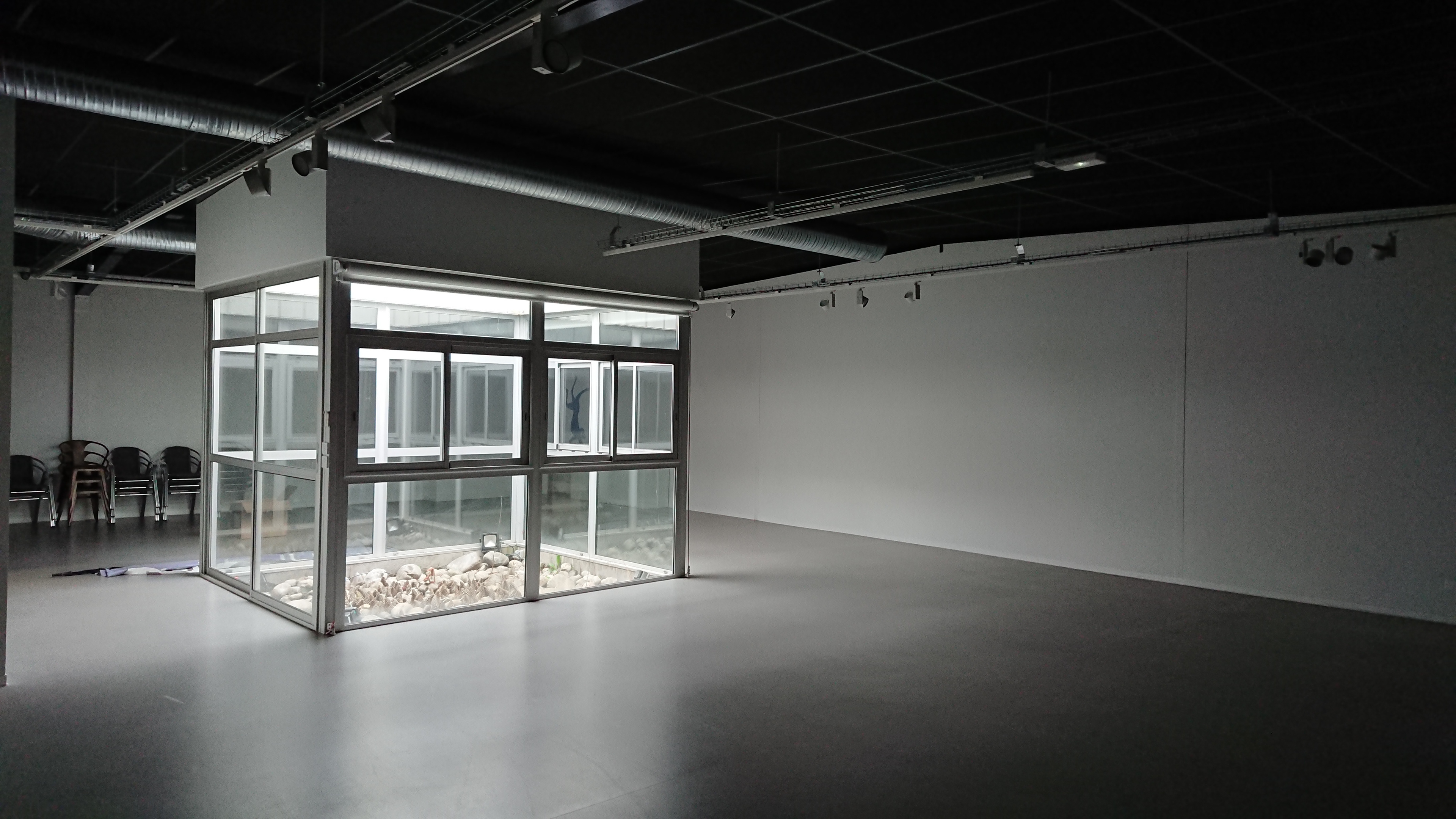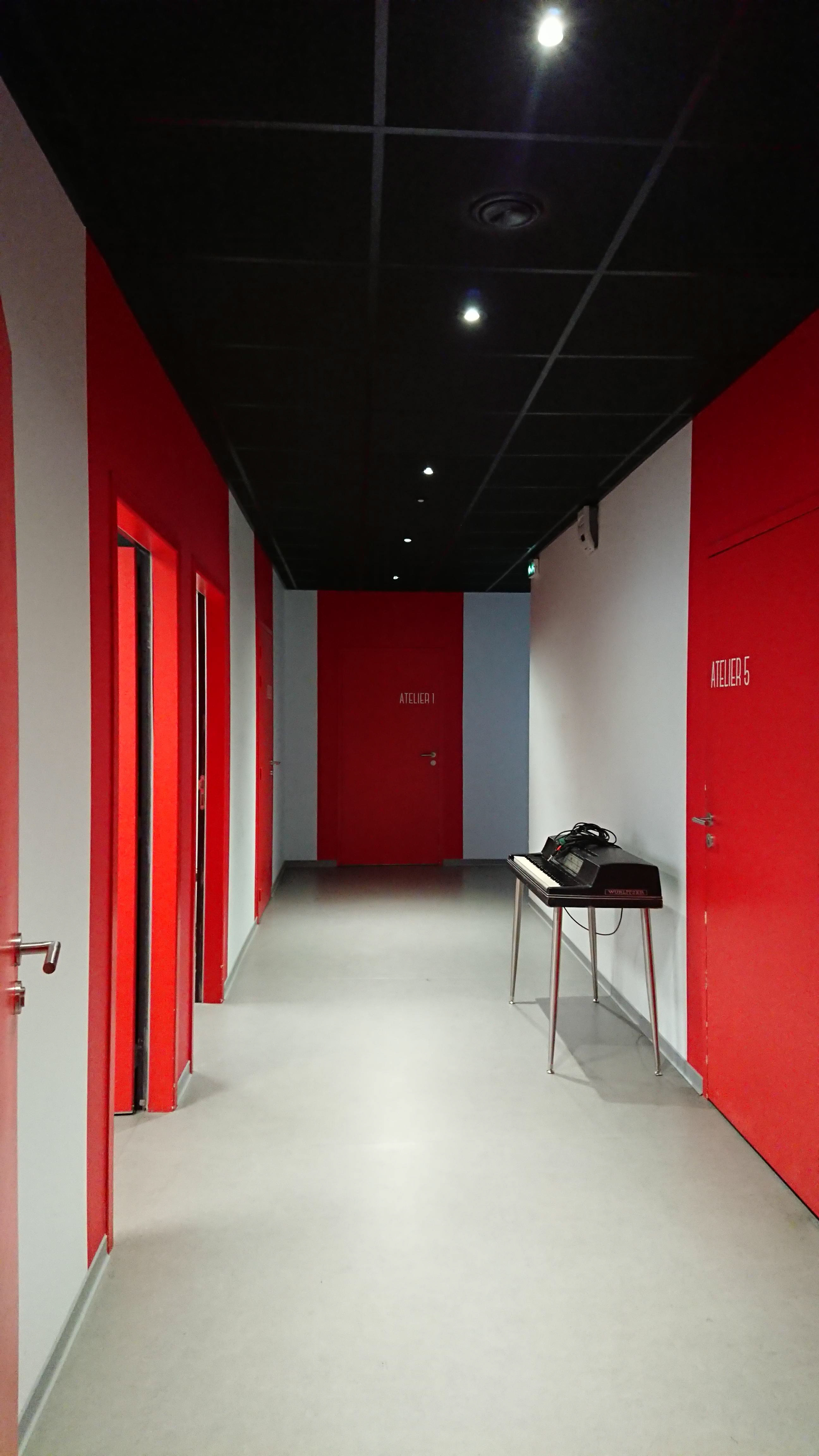 Requalification de 675 m² de bureaux du journal gratuit le Carillon 33, dont l’activité a cessé en 2013, en espace culturel dédiés aux arts visuels et sonore, comprenant salle d’exposition, un salle de concert pouvant accueillir un public de 150 personnes, 3 locaux d’artiste, 1 salle de répétition et salle polyvalente. Ce bâtiment de bureau, enclavé en zone résidentiel, et le long de la Rocade, conserve les vestiges de son passé et devient un lieu de rencontre d’échange et de partage autour de la culture. L’image et les contraintes de ce bâtiment (hauteur sous plafonds limitée), nous a amené à considérer les équipements et réseaux en plafond comme des éléments d’architecture à part entière..